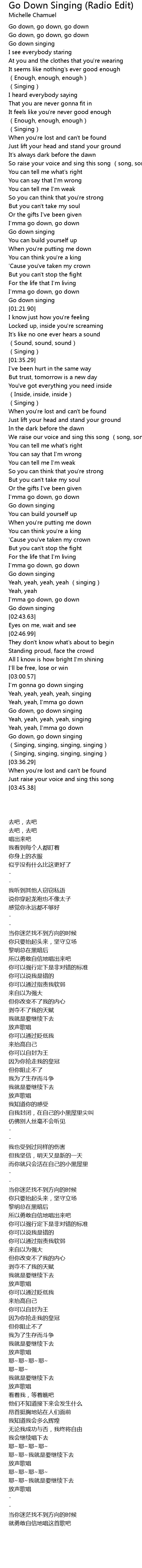 | [03:14.38] | Go down, go down singing |