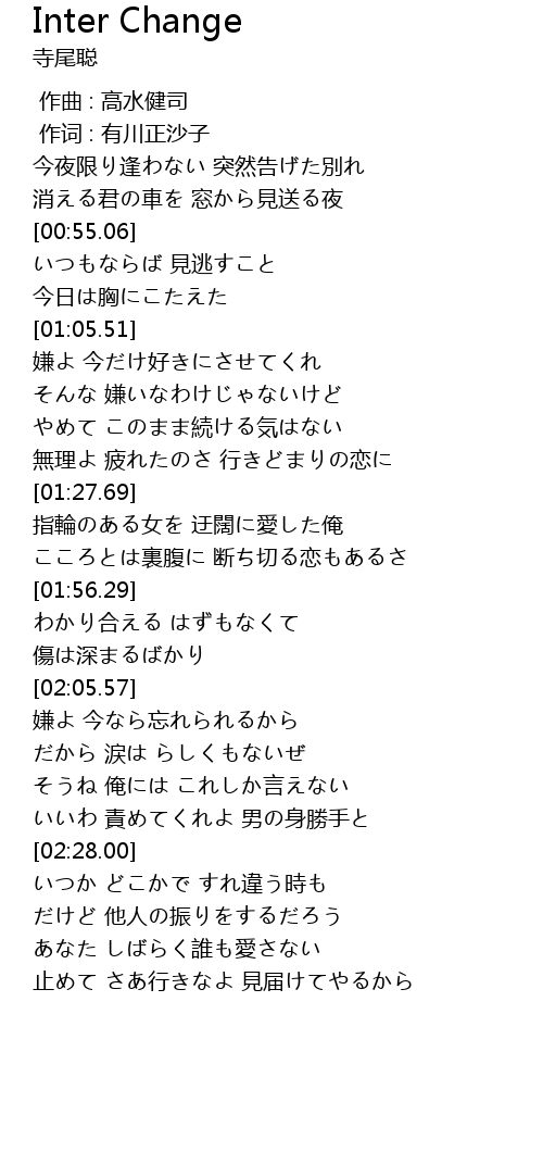 | [00:36.51] | 今夜限り逢わない 突然告げた別れ |