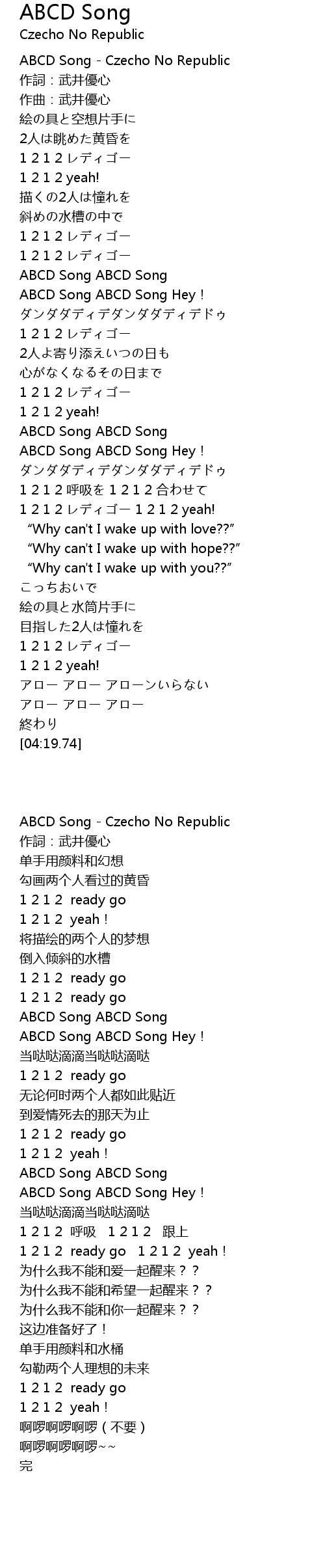 | [00:03.24] | ABCD Song - Czecho No Republic |