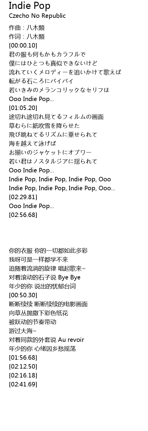 | [02:16.18] | Indie Pop, Indie Pop, Indie Pop, Ooo... |