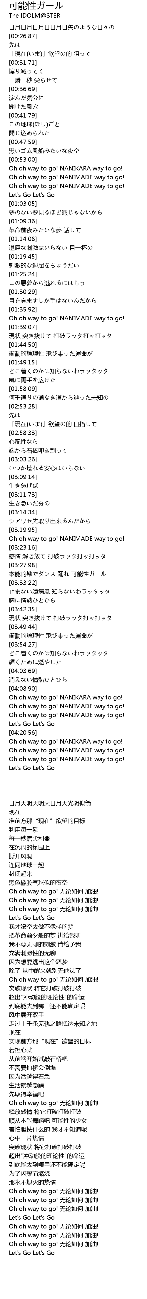 | [03:29.11] | 本能的勘でダンス 踊れ 可能性ガール |
