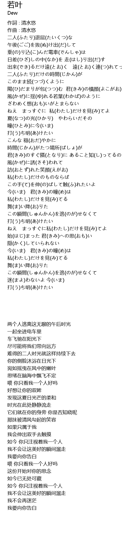 | [01:03.07] | 風(かぜ)に揺(ゆ)れる若葉(わかば)のように |