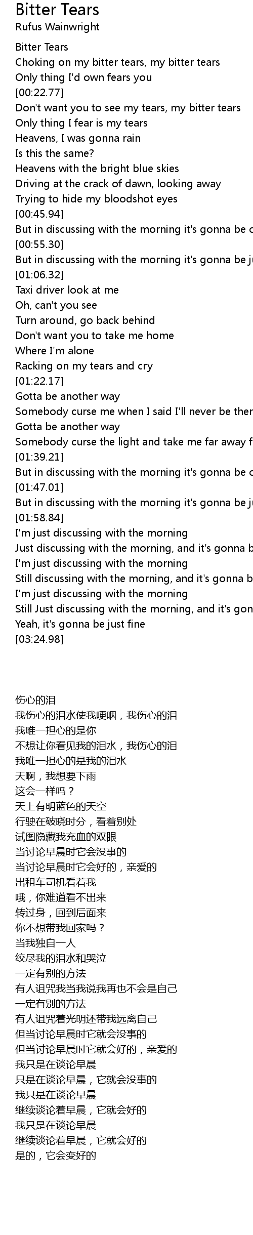 Don't want you to see my tears, my bitter tears |
