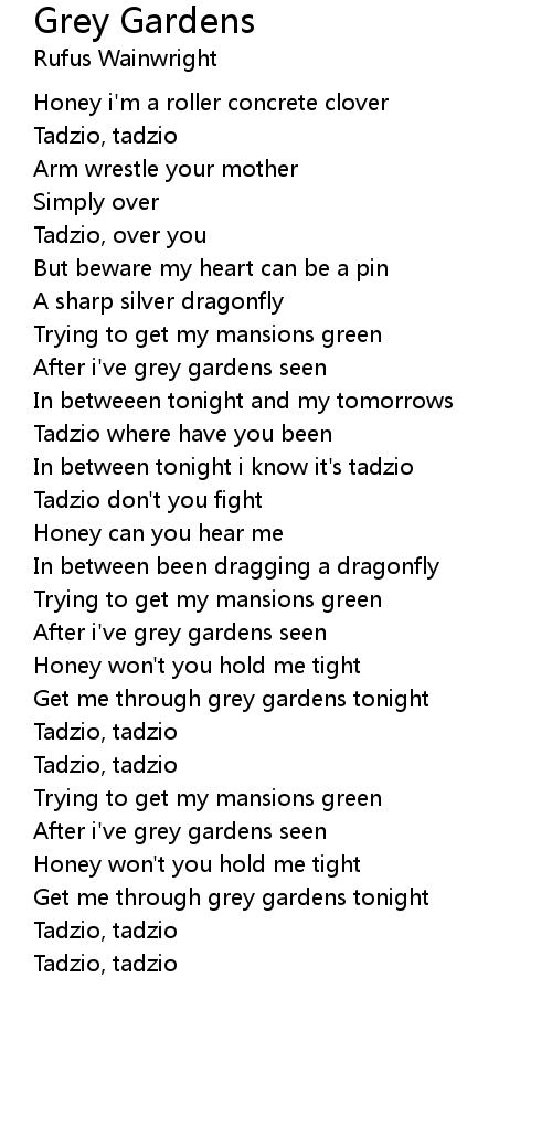Get me through grey gardens tonight |