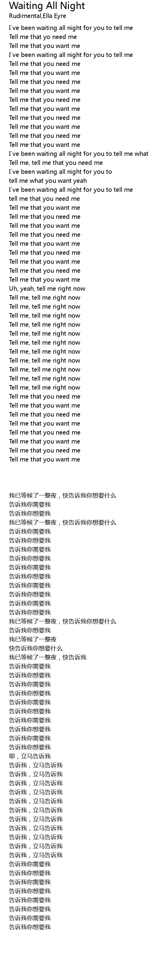 I`ve been waiting all night for you to tell me |