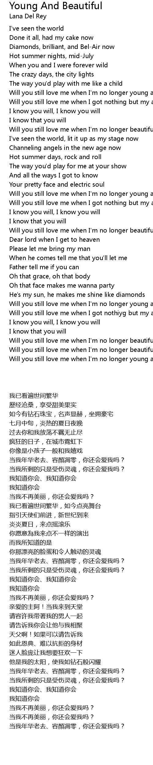 Will you still love me when I'm no longer young and beautiful |