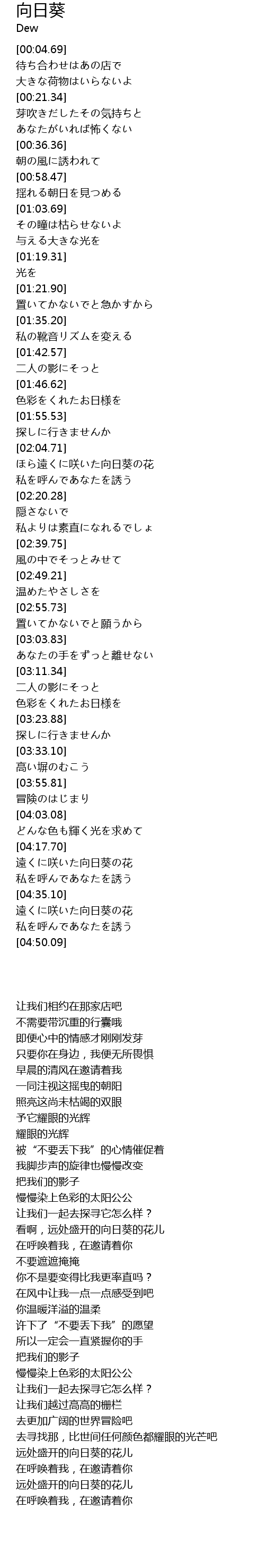 | [04:21.10] | yuǎn xiào xiàng rì kuí huā |