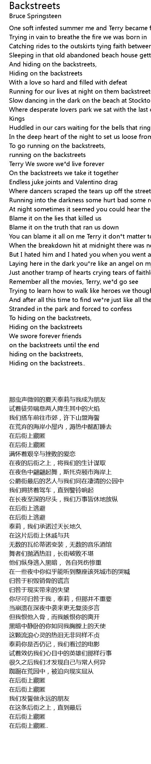 on the backstreets until the end |