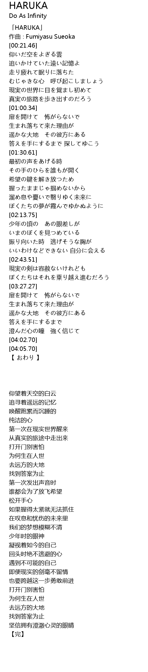 | [00:01.46] | 「HARUKA」 |