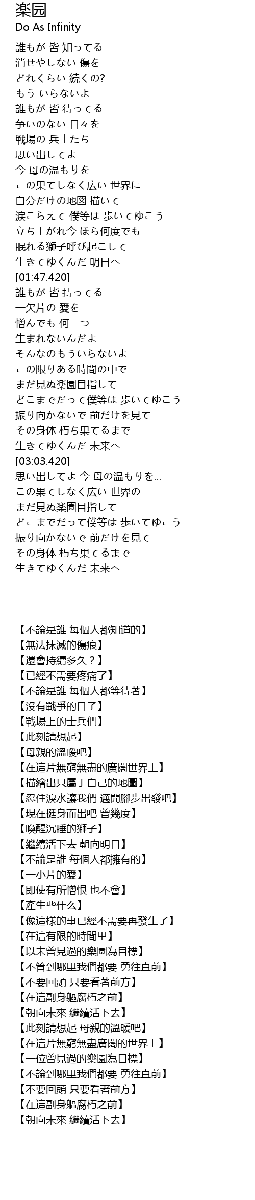 | [03:57.980] | まだ見ぬ楽園目指して |