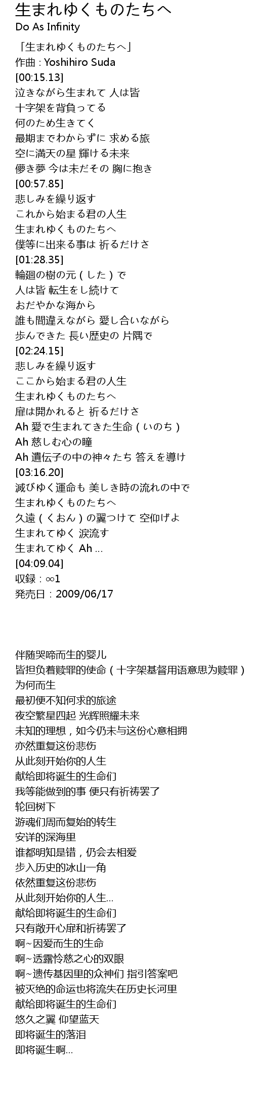 | [03:30.52] | 生まれゆくものたちへ |