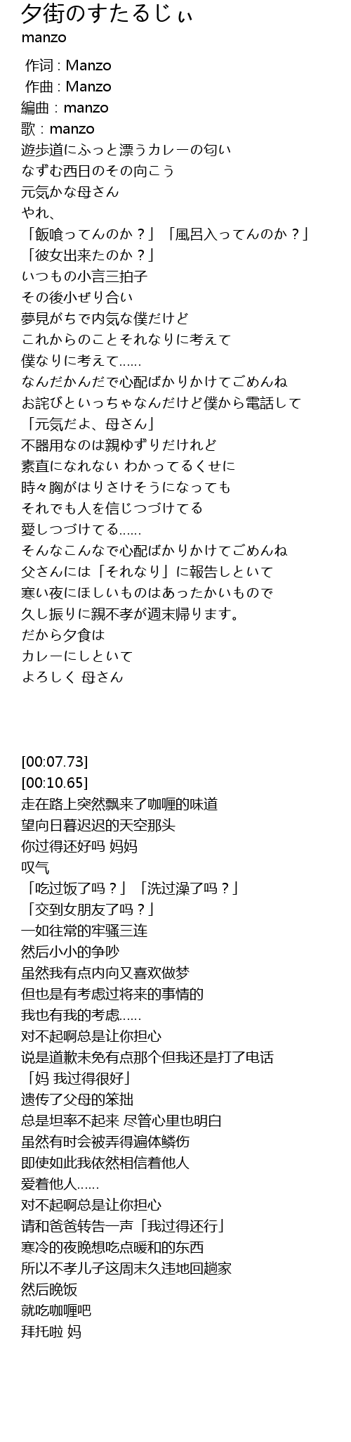 | [00:07.73] | 編曲:manzo |