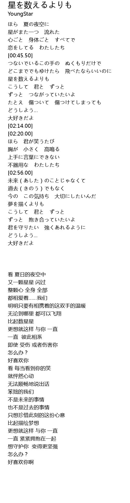 | [01:24.00] | 星を数えるよりも |