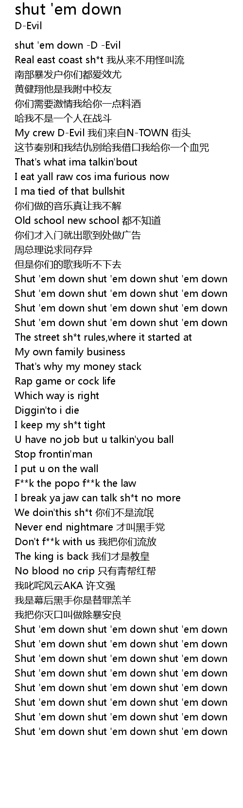 | [01:00.200] | Shut ' em down shut ' em down shut ' em down |