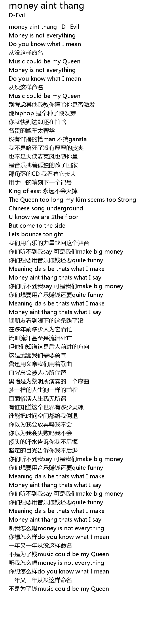 | [00:00.00] | money aint thang D Evil |