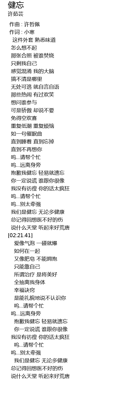 | [02:07.31] | 我们是健忘 无论多健康 |