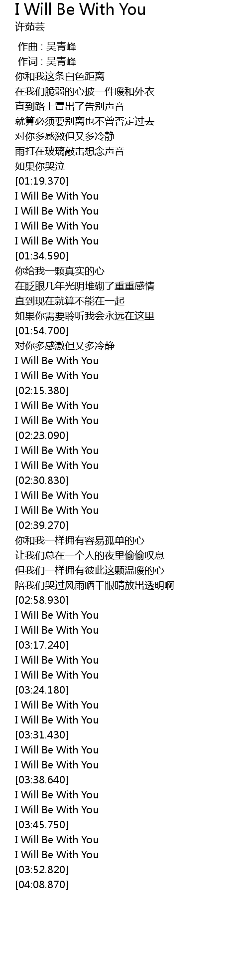 | [02:20.090] | I Will Be With You |
