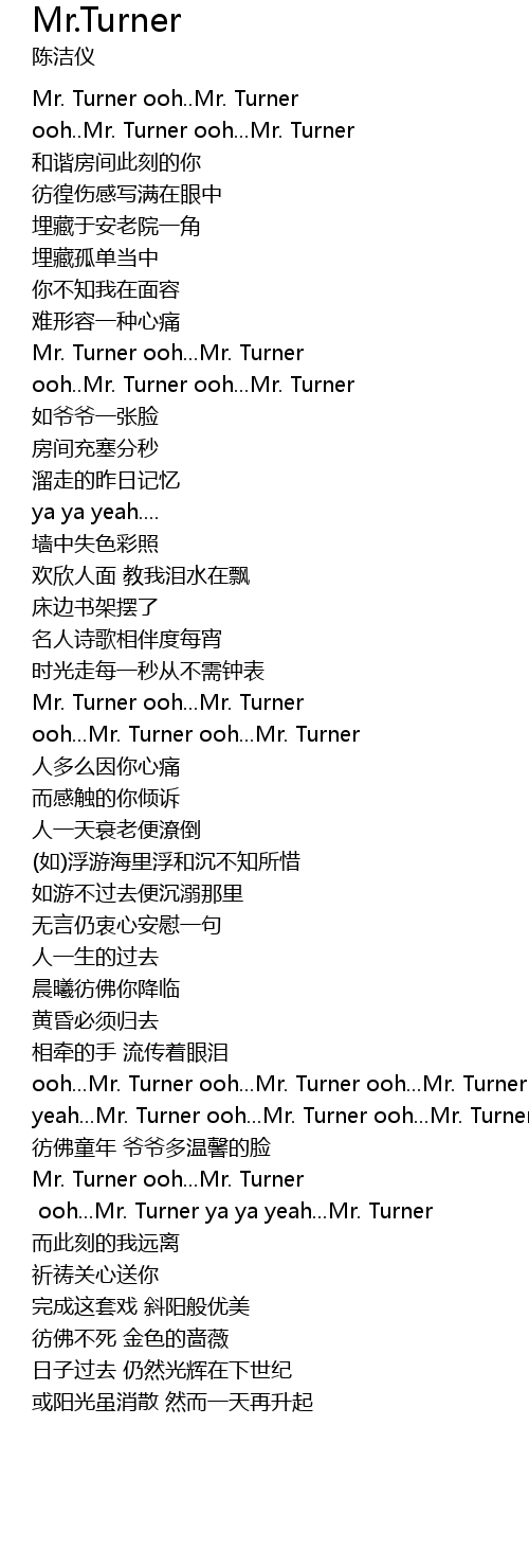 | [00:09.68] | ooh.. Mr. Turner ooh... Mr. Turner |