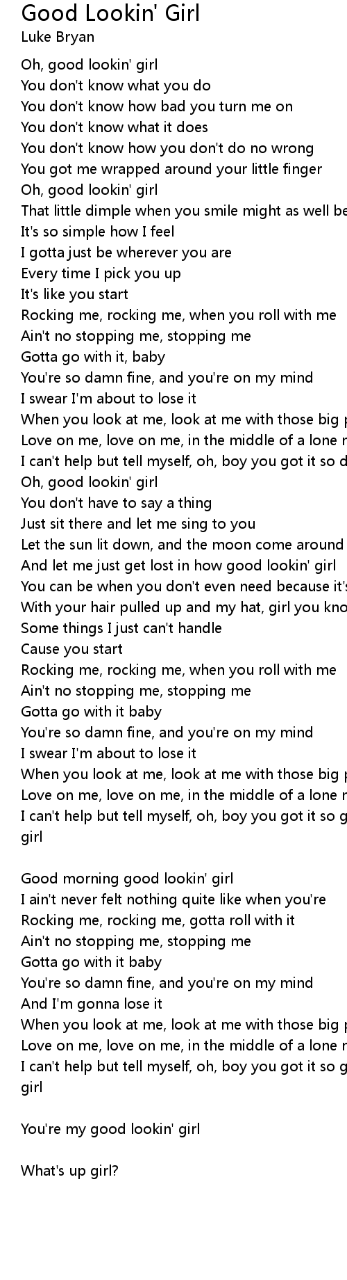 I can't help but tell myself, oh, boy you got it so good with this good lookin' girl |