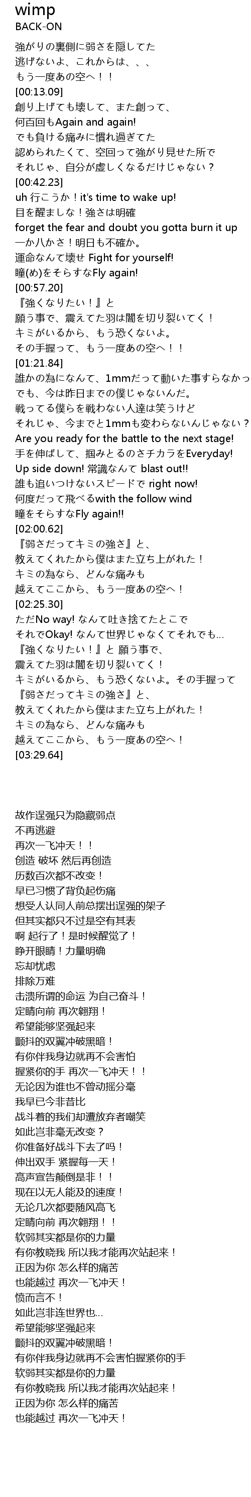 | [03:23.17] | 越えてここから、もう一度あの空へ! |