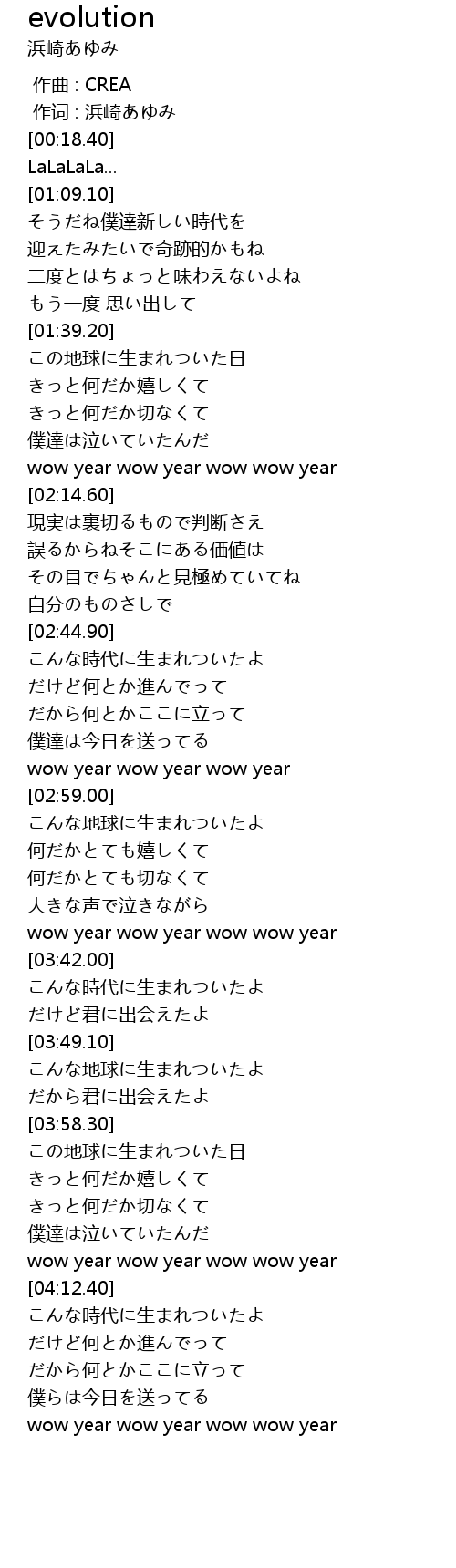 | [00:01.00] | 作词 : 浜崎あゆみ |
