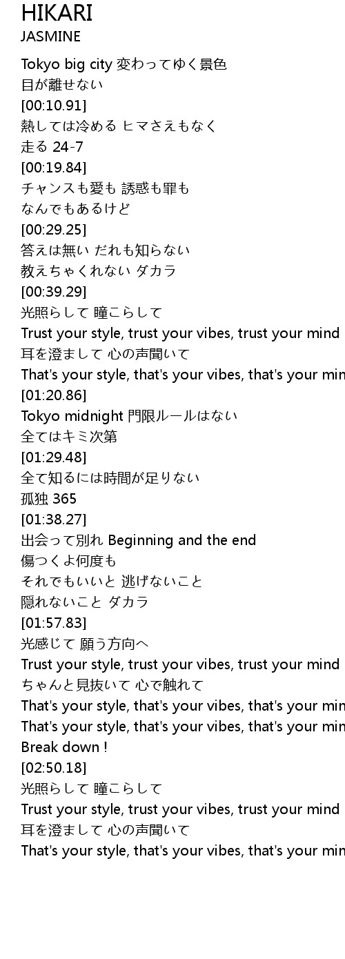 | [00:55.75] | Trust your style, trust your vibes, trust your mind |