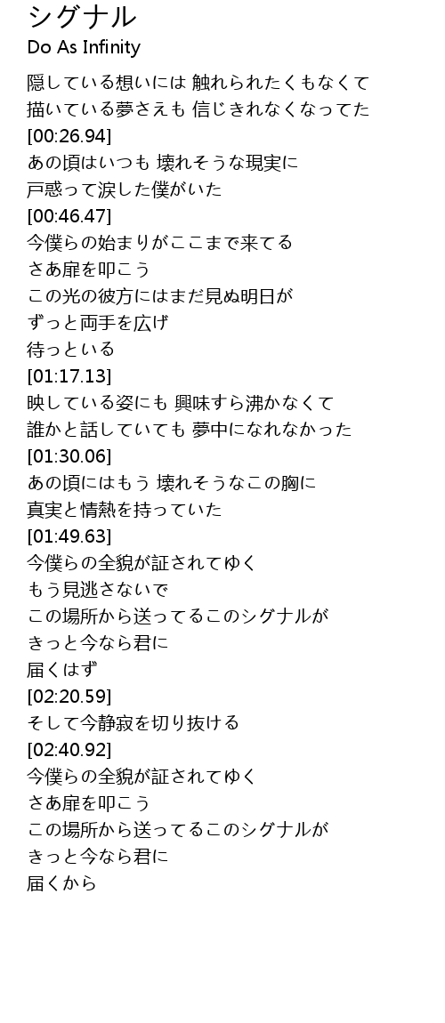 | [02:03.66] | この場所から送ってるこのシグナルが |