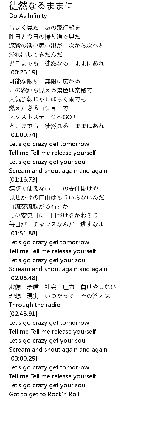 | [03:01.51] | Let' s go crazy get tomorrow |