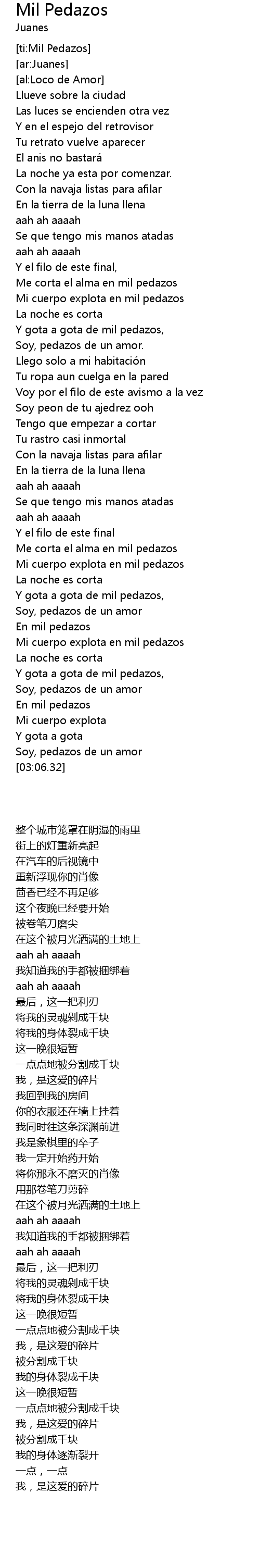| [02:16.80] | Me corta el alma en mil pedazos |