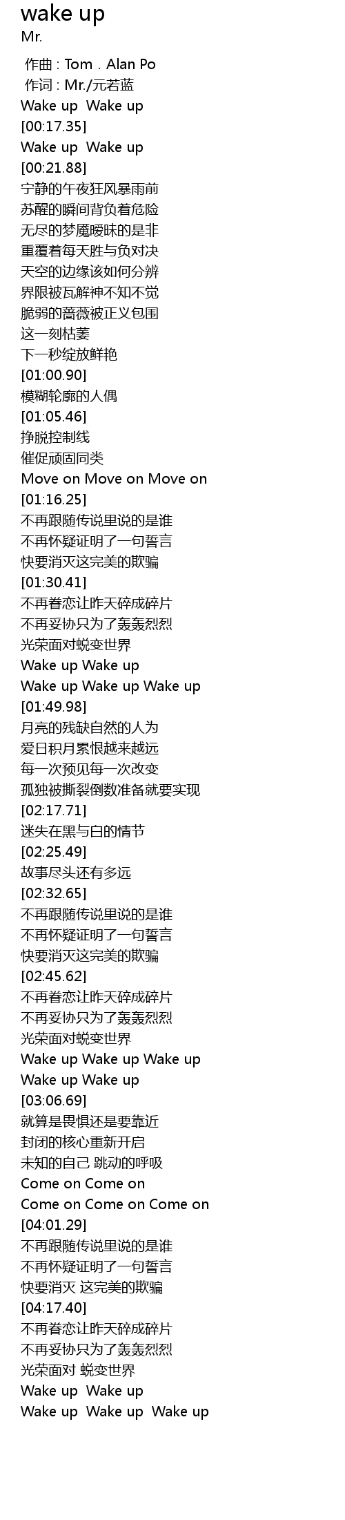 | [00:00.00] | zuo qu : Tom Alan Po |