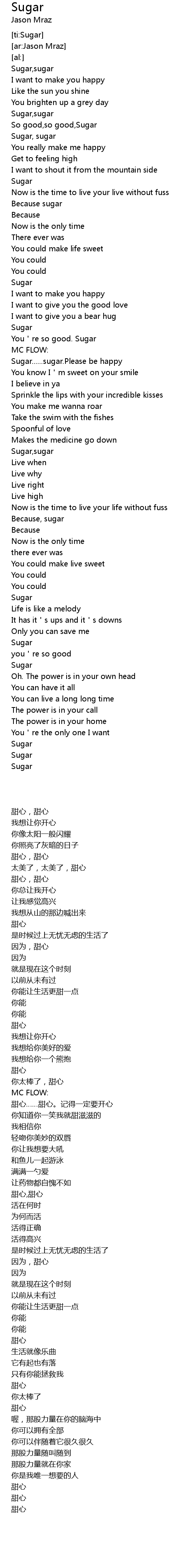 | [01:38.58] | Sugar...... sugar. Please be happy |