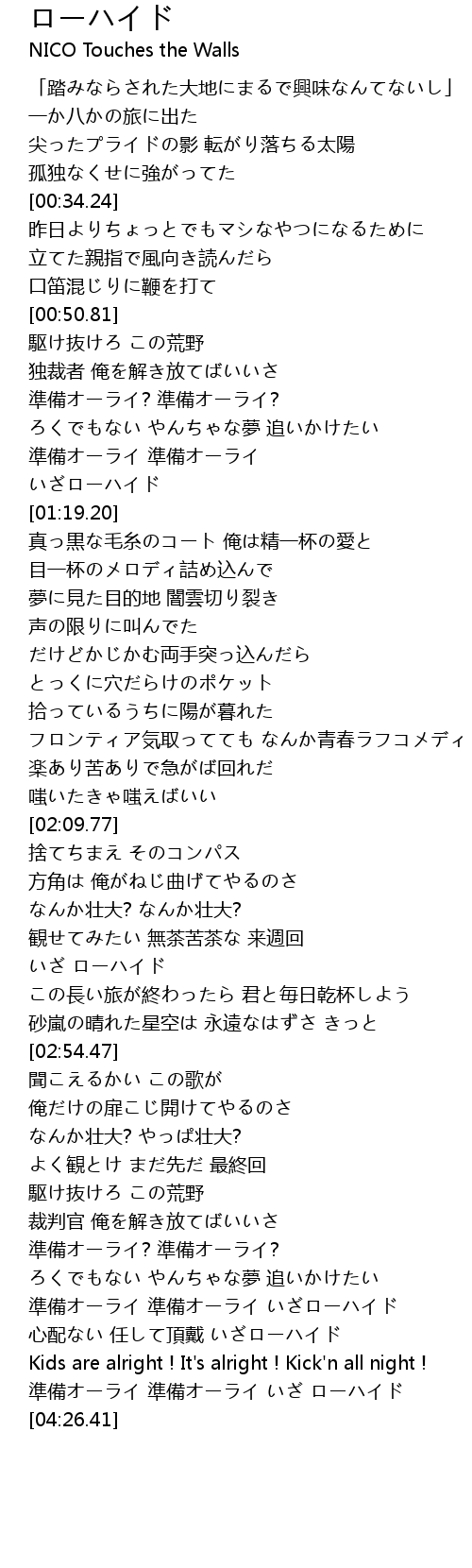 | [04:01.38] | 準備オーライ 準備オーライ いざローハイド |