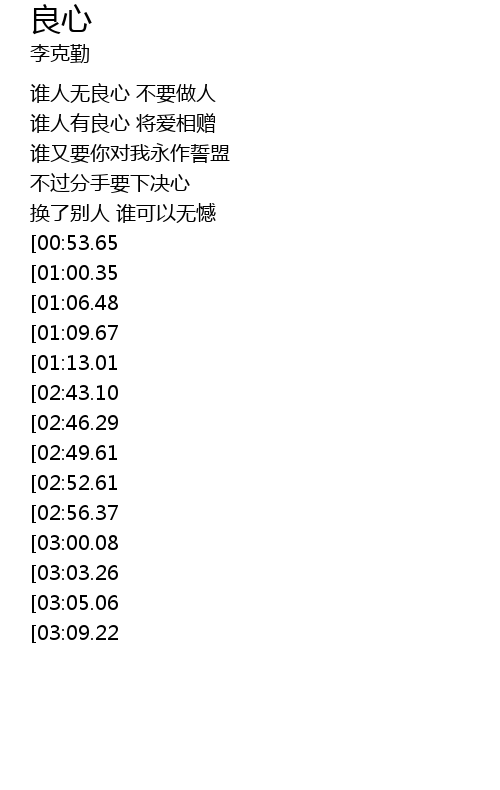 | [02:23.36][01:00.35] | shuí rén yǒu liáng xīn jìng gèng bù xìng |