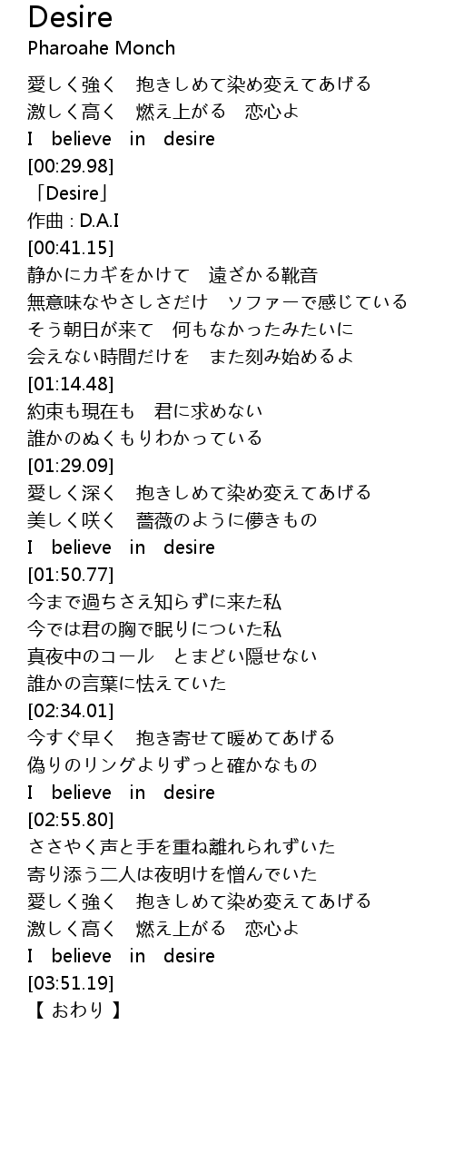 | [03:30.65] | 愛しく強く 抱きしめて染め変えてあげる |