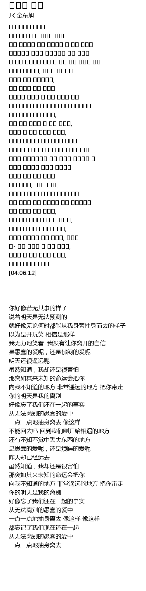 | [03:53.19] | 헤어날 수 없는 미련한 사랑에, |
