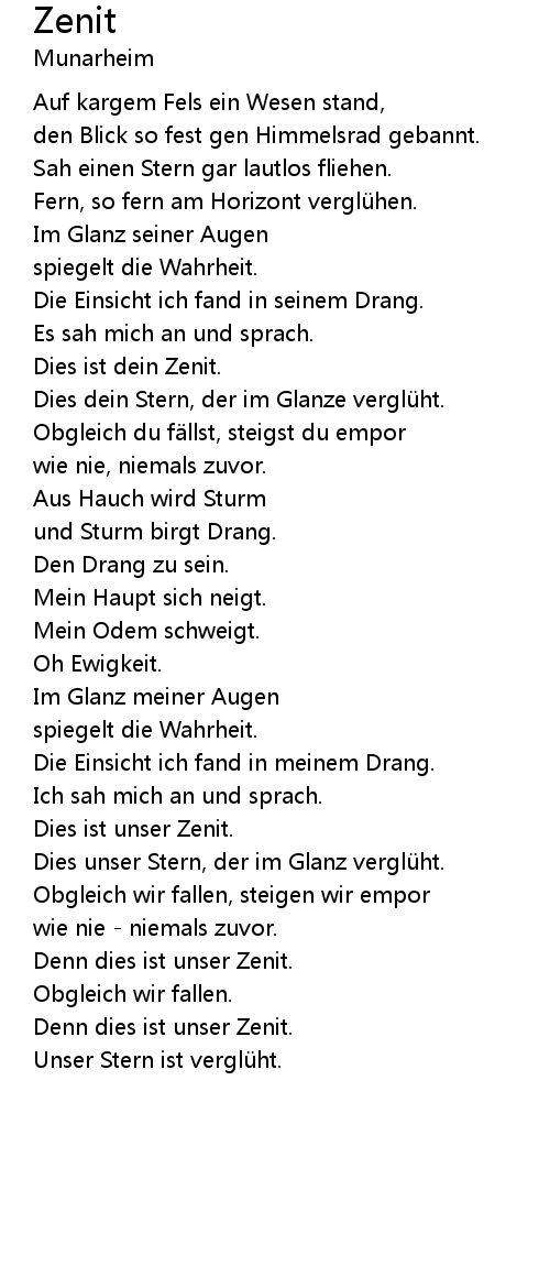 | Denn dies ist unser Zenit. | |