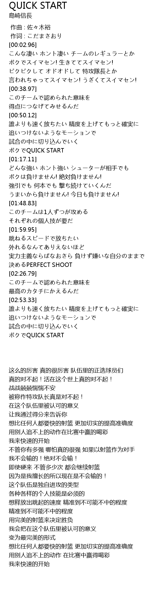 | [03:15.76] | ボクでQUICK START |