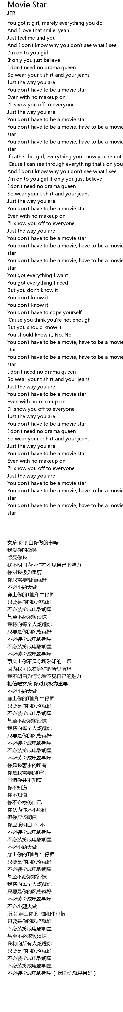 | [00:47.45] | You don't have to be a movie, have to be a movie, have to be a movie star |