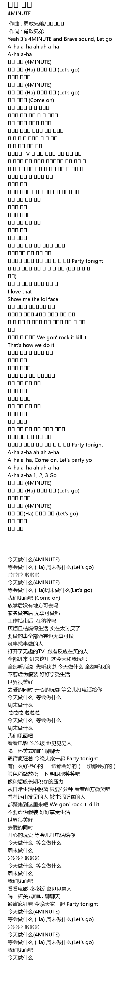 | [00:02.350] | Yeah It' s 4MINUTE and Brave sound, Let go |