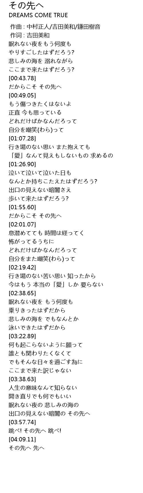 | [00:00.00] | 作曲 : 中村正人/吉田美和/鎌田樹音 |