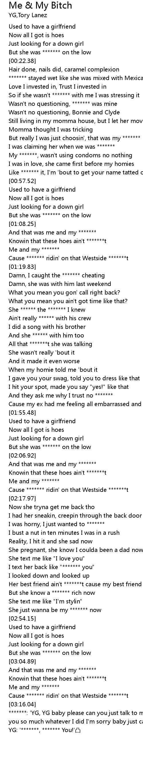 | [03:16.64] | *******: 'YG, YG baby please can you just talk to me please, I love you so much whatever I did I'm sorry baby just call me okay?' |