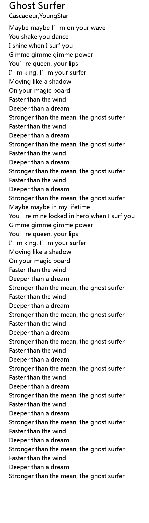 | [02:48.67] | Stronger than the mean, the ghost surfer |