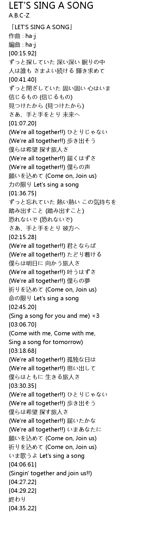 | [00:00.92] | 「LET'S SING A SONG」 |