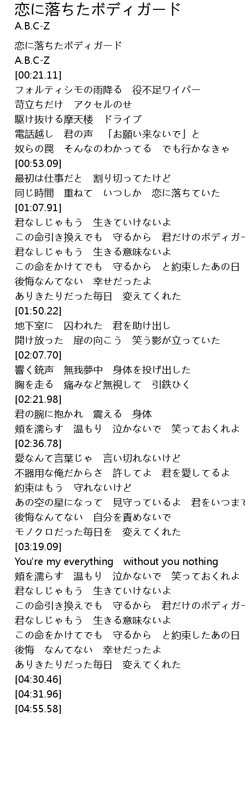 | [03:54.97] | この命引き換えでも 守るから 君だけのボディガード |