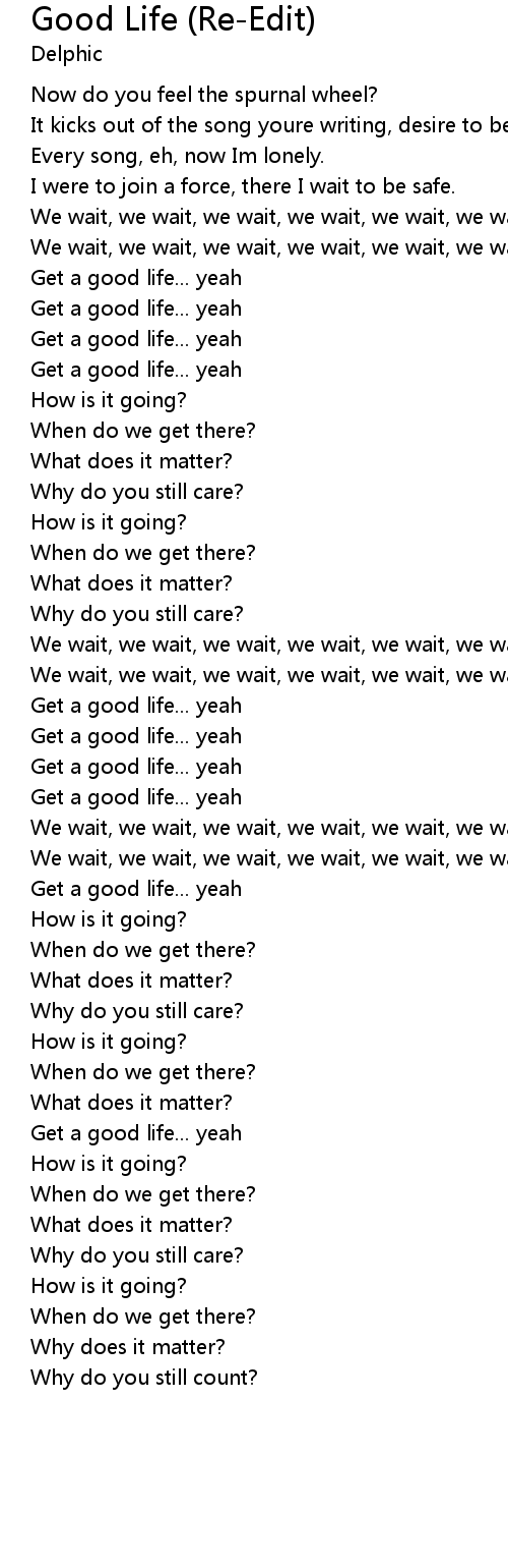 Get a good life... yeah |