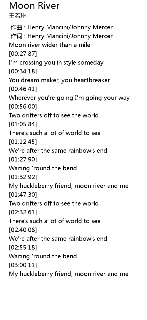 | [03:02.10] | My huckleberry friend, moon river and me |