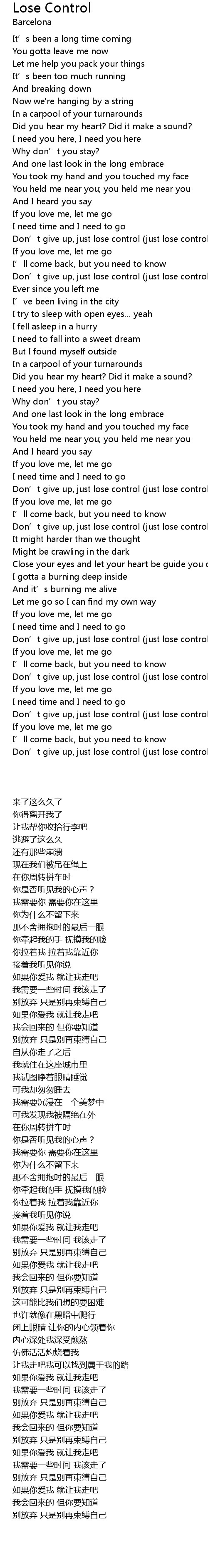 | [02:36.280] | Don' t give up, just lose control just lose control |