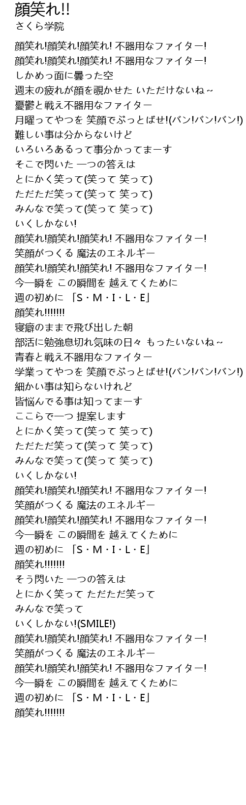 | Song | 顔笑れ!! |