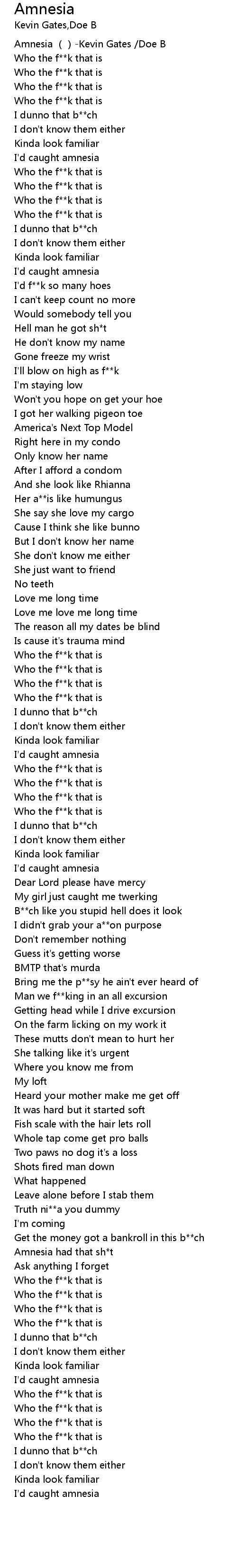 | [00:00.00] | Amnesia ()-Kevin Gates /Doe B |