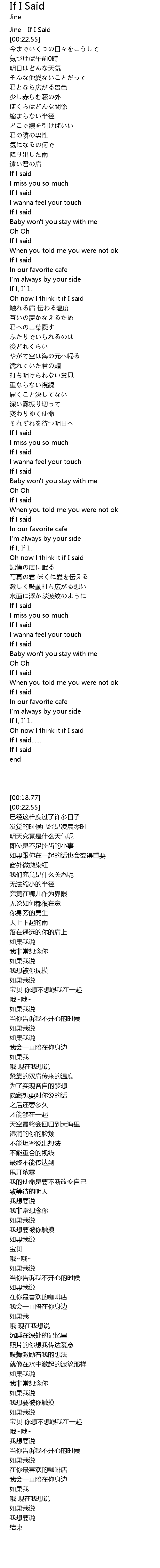 | [00:18.77] | Jine - If I Said |